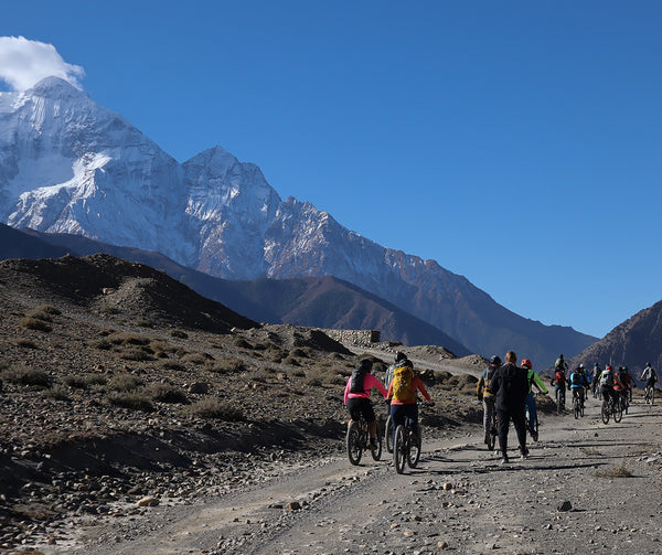 Today we re-mount the bikes. The gravel and paved roads climb gently through pine forest, apple orchards and stone hamlets. As we near Kagbeni, the gateway to the restricted Upper Mustang region, the landscape turns arid and Tibetan in character. The dramatic peaks of Nilgiri and Dhaulagiri rise high above us. The valley we cycle along today was once carved out by glaciers and is sometimes called the world's deepest gorge. There are eons of geographical history here as well and we can spend some time in the river beds fossicking for Shaligrams ( fossilized seas creatures in stones).